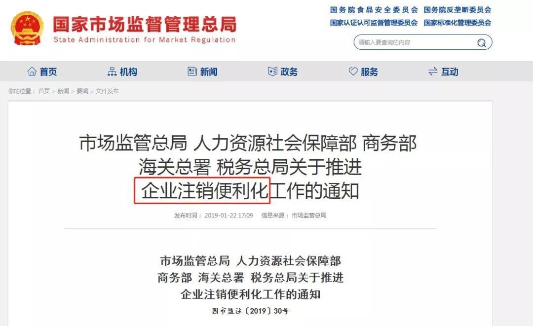 今年年初,市場(chǎng)監(jiān)管總局 人力資源社會(huì)保障部 商務(wù)部 海關(guān)總署 稅務(wù)總局發(fā)布通知,在2019年9月1日前,全國(guó)實(shí)現(xiàn)企業(yè)注銷(xiāo)“一網(wǎng)”服務(wù)。企業(yè)無(wú)需再提交清算組備案的4份材料,將公告時(shí)間由45天壓縮至20天、清稅手續(xù)免辦服務(wù)等等,無(wú)不讓注銷(xiāo)更簡(jiǎn)化了!