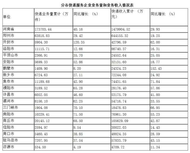 開封業(yè)務(wù)量增長(zhǎng)翻倍,鶴壁快遞收入同比增152%