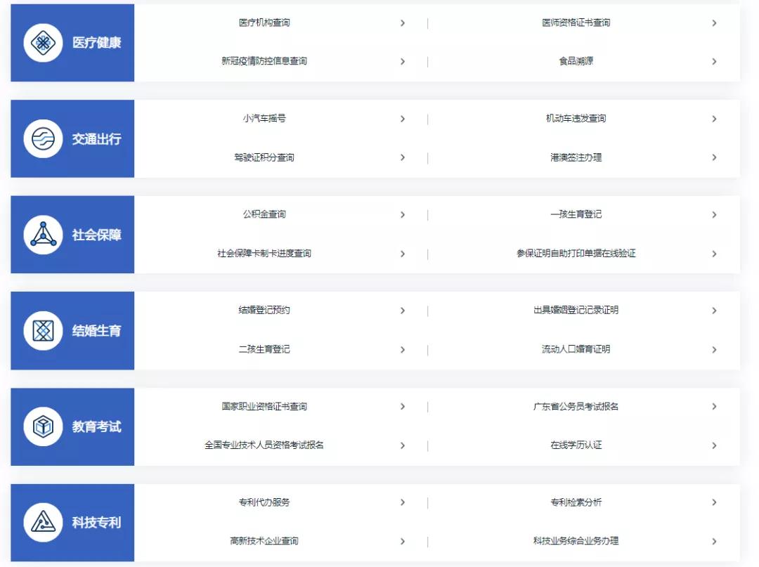 其中,醫(yī)療健康、交通出行、社會保障、結(jié)婚生育、教育考試、科技專利等六類多項便民服務可在線辦理。