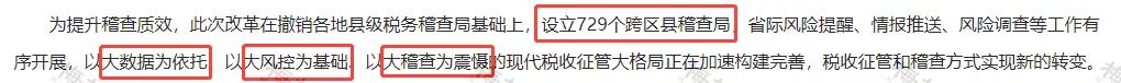 國家今年強化了稅收大數(shù)據(jù)、風(fēng)險管理和稅收分析,推進稅收違法“黑名單”制度,還新設(shè)立了729個跨區(qū)縣稽查局!企業(yè)若要逃脫金三大數(shù)據(jù)的監(jiān)控,想都不要想!